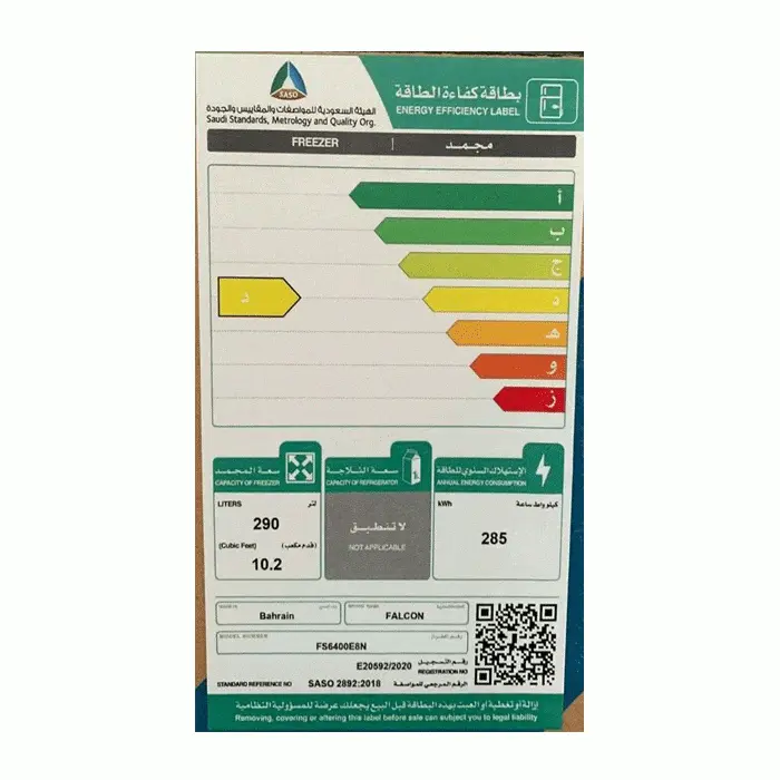 فريزر ارضي فالكون 10 قدم ابيض fs6400e8n