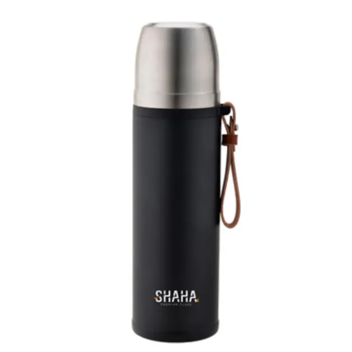 قارورة شاها سخن/بارد 450 مل يد جلد – أسود