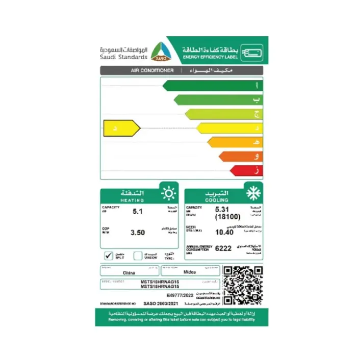 مكيف اسبليت ميديا 18100 وحدة – حار/ بارد MSTS18HRNAG15