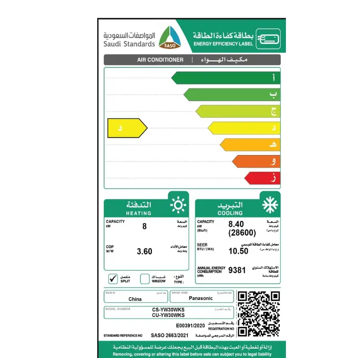 مكيف سبليت باناسونيك 28600 وحده حار – بارد cs/Cu-yw30wks