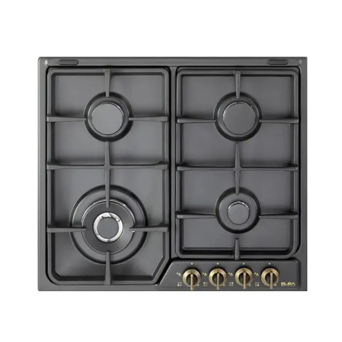 بوتجاز سطحي ايطالي البا مصمم بـ 4 مفاتيح تحكم نحاسية أنيقة تعكس الطابع الكلاسيكي الفاخر تمتاز هذه المفاتيح بقوة تحمل عالية ومقاومة للحرارة مما يضمن أداءً عمليًا وآمنًا على المدى الطويل كما أن تصميمها الانسيابي يسهل عملية التحكم في درجة اللهب بدق، ويضفي لمسة جمالية فاخرة على واجهة البوتجاز مما يجعله قطعة مميزة في أي مطبخ.