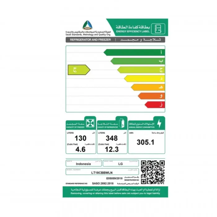 ثلاجة بابين ال جي انفرتر 17 قدم اندونسيا – ابيض Lt18cbbwln