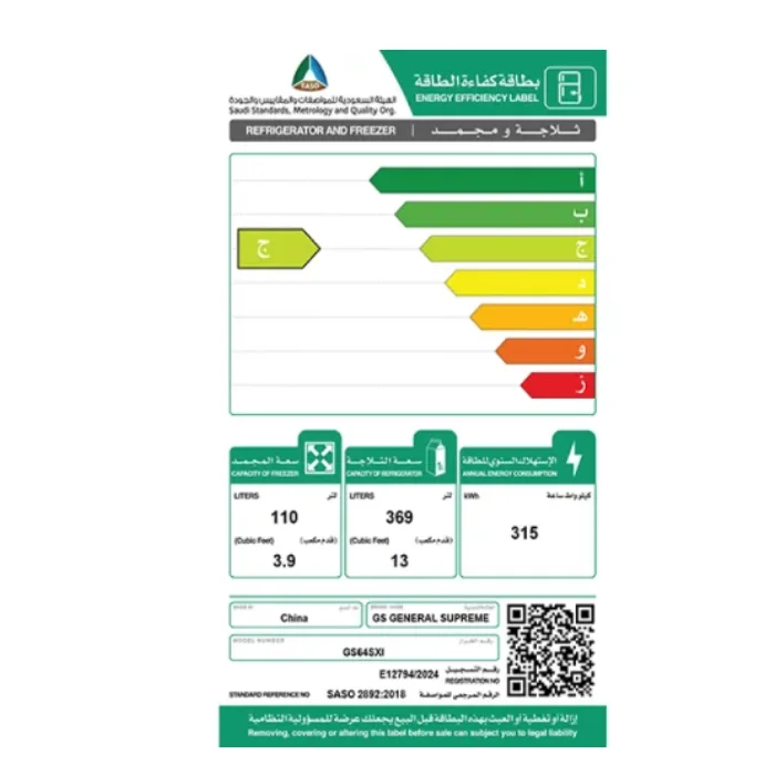 تتميز ثلاجة بابين جنرال سوبريم بضاغط إنفرتر موفر للطاقة يعمل بكفاءة عالية لتقليل استهلاك الكهرباء مع الحفاظ على أداء تبريد قوي ومستقر. يتميز بتقنية متطورة تتحكم في سرعة التشغيل وفقًا لاحتياجات التبريد الفعلية، مما يوفر طاقة أكبر ويطيل عمر الجهاز، بالإضافة إلى تشغيل أكثر هدوءًا وموثوقية على المدى الطويل.