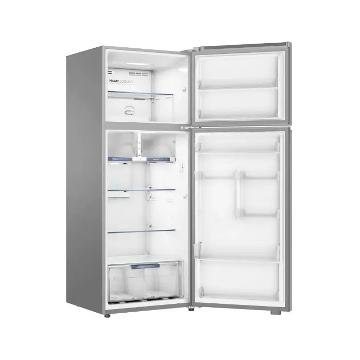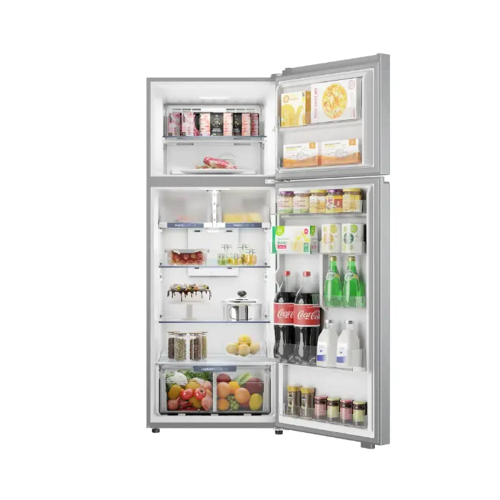 ثلاجة بابين تتميز بتصميم عصري أنيق مع مقبض مدمج داخل الباب يمنحها مظهرًا انسيابيًا وجذابًا يناسب جميع أنماط المطابخ الحديثة فبدلاً من المقابض البارزة التقليدية، يأتي هذا المقبض المدمج ليمنح الثلاجة طابعًا أنيقًا ومساحة أكبر في المطبخ، مما يجعلها أكثر راحة وسهولة في الاستخدام كما أن تصميمه المريح يسهل عملية الفتح والإغلاق دون عناء، وهو مثالي للعائلات التي تبحث عن مزيج من الجمال والعملية في آنٍ واحد.