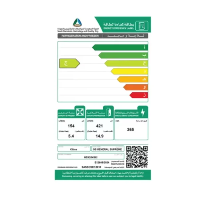 ثلاجة دولابى جنرال سوبريم – 20 قدم انفرتر استيل GSX204SXI