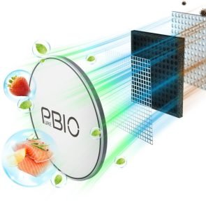 فلتر بيور بيو مصنوع من صفائح من السيراميك مطلية بأيونات من الفضة ويكون على شكل خلية النحل,يعمل هذا الفلتر على إمتصاص الروائح الكريهة بنسبة 99.9 % مما يحافظ على جودة الأطعمة والمشروبات.