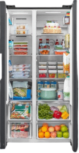 تتميز ثلاجة دولاب توشيبا بابين بسعة داخلية كبيرة تلبي احتياجات العائلات حيث توفر مساحة تخزين واسعة لتنظيم مختلف أنواع الأطعمة والمشروبات بسهولة فتصميمها الداخلي الذكي يتيح استخدام كل جزء بكفاءة مما يجعلها الخيار المثالي للاستخدام اليومي المكثف مع الحفاظ على ترتيب مثالي ونضارة تدوم أطول.