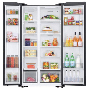 توفر ثلاجة دولاب سامسونج أدراج تخزين واسعة ومرتبة مصممة لتسهيل تنظيم الأطعمة والمشروبات بشكل عملي ومنظم تساعد هذه الأدراج على استغلال المساحة الكبيرة للثلاجة بأقصى قدر ممكن مع تسهيل الوصول إلى المحتويات بسرعة وسلاسة كما تساهم في الحفاظ على نضارة الأطعمة وترتيبها بطريقة تجعل من السهل رؤية كل العناصر المخزنة مما يعزز تجربة الاستخدام اليومية ويجعل الثلاجة أكثر فعالية وراحة للعائلة.
