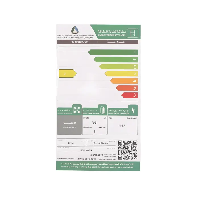 ثلاجة سمارت الكتريك باب واحد 3 قدم – أبيض Sem100dr