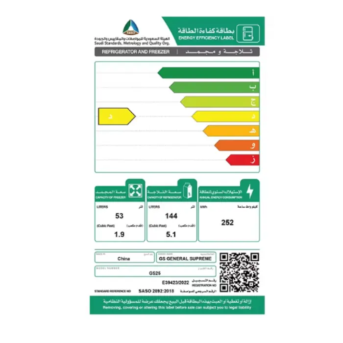 ثلاجة 7 قدم بابين جنرال سوبريم NO FROST – أبيض GS25
