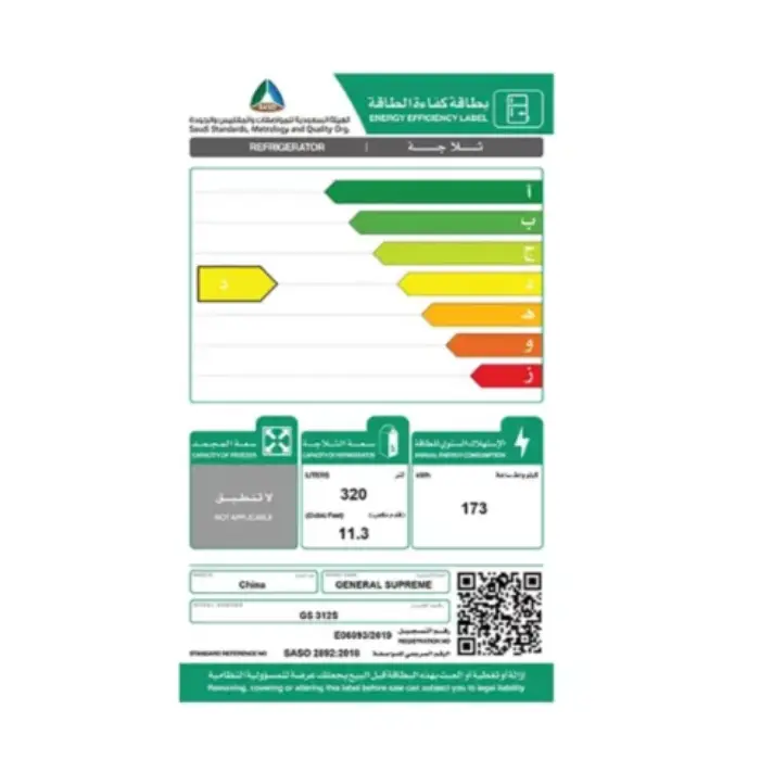 الرئيسية الثلاجات & الفريزرات ثلاجات باب واحد ثلاجه باب واحد جنرال سوبريم 11 قدم – ستيل GS312S