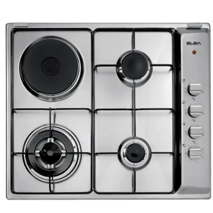 يتميز سطح بلت ان البا غاز و كهرباء بمقاس 60 سم بتصميم أنيق من الستانلس ستيل يجمع بين الأداء العالي والسلامة يجمع هذا السطح بين شعلة غاز قوية لتسخين سريع ودقيق إلى جانب منطقة كهربائية مرنة للطهي المتنوع يتمتع بإشعال إلكتروني سهل ودعامات من الحديد الزهر لتوفير ثبات مثالي للأواني بالإضافة إلى أنظمة أمان متقدمة تمنحك راحة بال أثناء الاستخدام إنه الخيار المثالي لمطبخ عصري يجمع بين السرعة، الأمان والتصميم العملي.