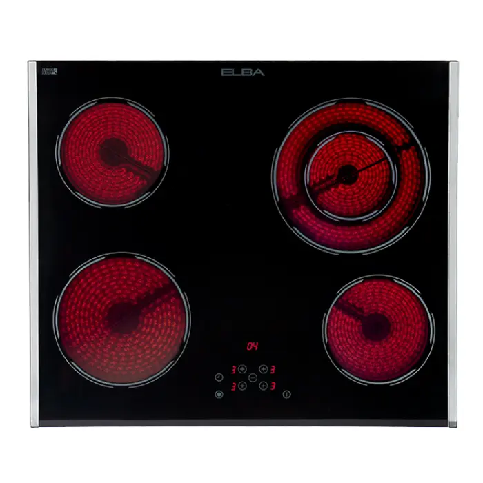 سطح سيراميك كهربائي البا مصمم بأربع مناطق تسخين عالية الكفاءة مما يتيح لك طهي عدة أطباق في الوقت نفسه بسهولة ومرونة تم توزيع المناطق بشكل عملي لتناسب مختلف أحجام الأواني وتوفر استجابة سريعة للتسخين لتجربة طهي أكثر كفاءة وتنظيمًا مثالي للمطابخ العصرية التي تجمع بين الأداء القوي والتصميم الأنيق.