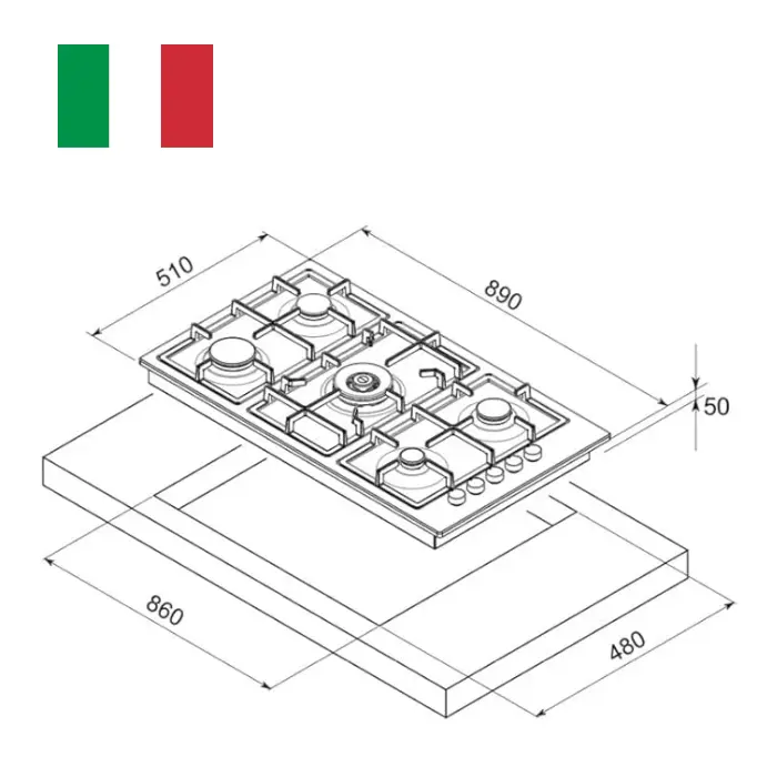 | الصنف | سطح غاز كيتشن لاين 90 سم 5 عين – ستيل |