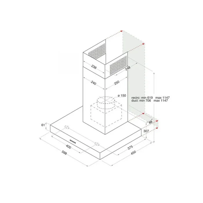 شفاط جليم هرمي بلت إن 60سم – ستيل GHP640IX