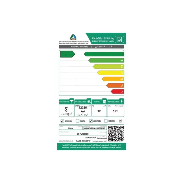 تحميل امامى 12 كيلو جنرال سوبريم – انفرتر – فضي GSFL1208DH