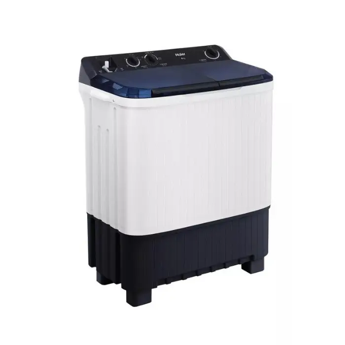 غسالة حوضين هاير 8 كيلو 2 برنامج – تجفيف بالهواء – أبيض/ أزرق HTW80-1217