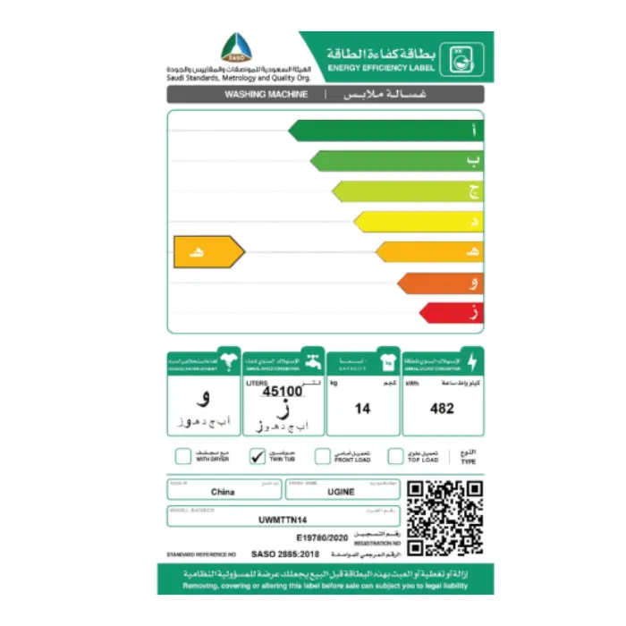 غسالة حوضين يوجين 14 كيلو – أبيض UWMTTN14