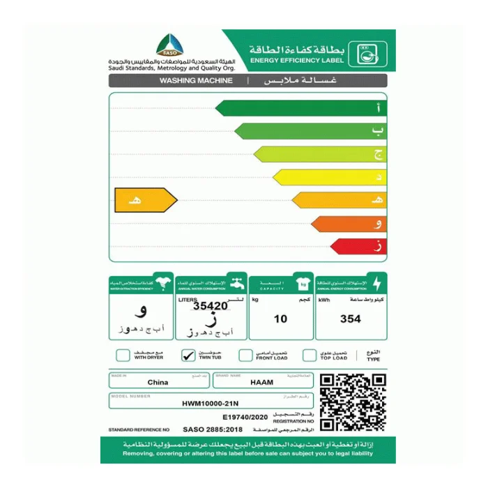 غسالة حوضين 10 كيلو هام – أبيض Hwm10000-21n