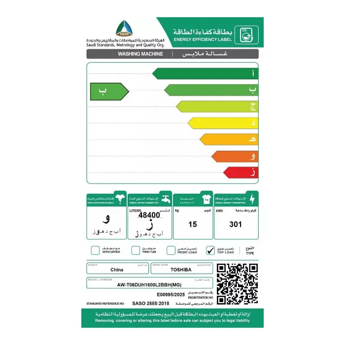 غسالة ملابس توشيبا تعبئة علوية 15 كجم انفرتر – رمادي AW-T06DUH1600L2BBH(MG)