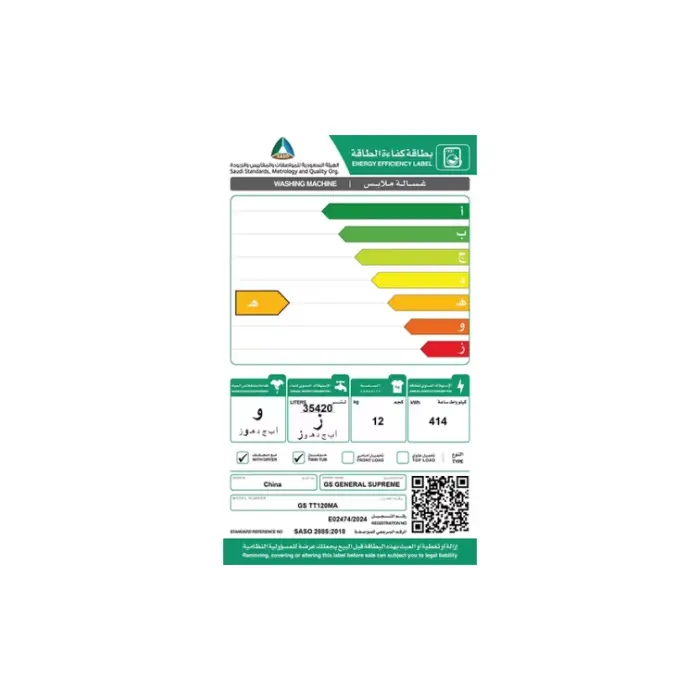غسالة ملابس حوضين جنرال سوبريم 12كيلو _ابيض