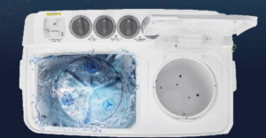 تتميز غسالة ملابس حوضين  ذات الحوضين بفلتر شوائب متطور يعمل على تنقية المياه من الأوساخ والقطع الصغيرة العالقة أثناء عملية الغسيل. يساعد هذا الفلتر في الحفاظ على نقاء المياه داخل الحوض، مما يضمن نظافة أفضل للملابس ويمنع تراكم الأوساخ أو انسداد أنظمة التصريف. كما يسهل تنظيف الفلتر وإعادة استخدامه، مما يجعل صيانة الغسالة أكثر سهولة ويطيل من عمرها الافتراضي. بفضل هذه الميزة، يمكنك الاستمتاع دائمًا بملابس نظيفة ومنعشة مع أداء ثابت وموثوق في كل دورة غسيل