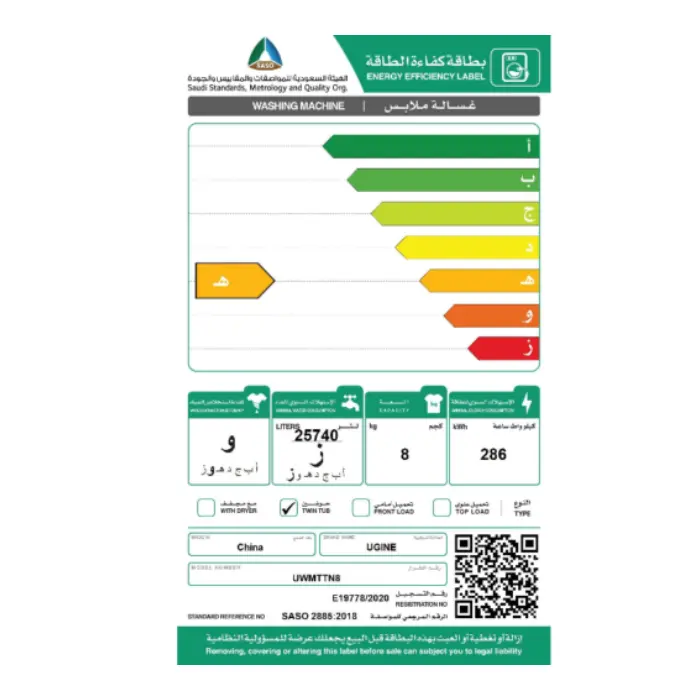 غسالة ملابس حوضين يوجين 8 كيلو – أبيض UGWTTM8