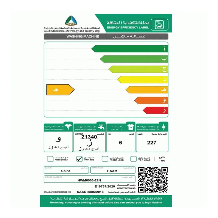 غسالة هام حوضين 6 كيلو – أبيض Hwm6000-21n