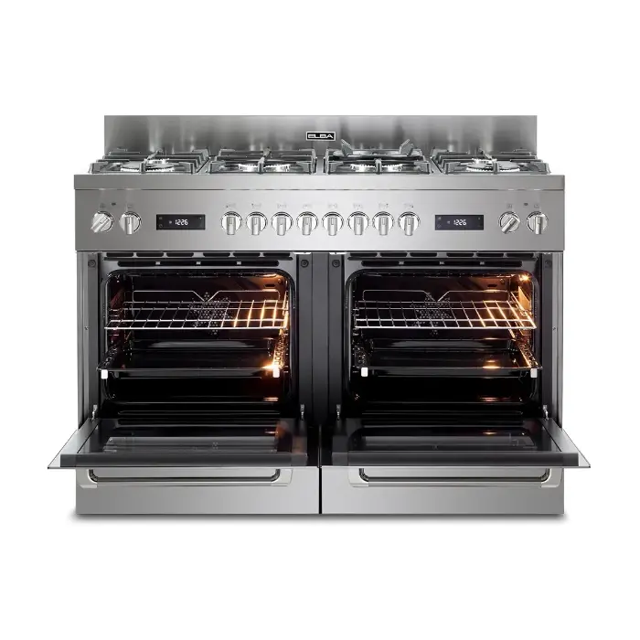 فرن 6 عيون البا غاز وكهرباء يأتي بمساحة طهي ممتازة بفضل تصميمه الذكي الذي يضم 6 شعلات غاز واسعة تتيح الطهي المتعدد في نفس الوقت بالإضافة إلى فرنين كهربائيين مستقلين بسعة 59 لتر لكل منهما مما يوفر مرونة مثالية لتحضير أكثر من طبق في آنٍ واحد تعدد الشعلات وسعة الأفران يجعلان هذا الجهاز الخيار الأمثل للمطابخ الكبيرة ومحبي الطهي المنزلي حيث يجمع بين الكفاءة والراحة في الاستخدام اليومي.