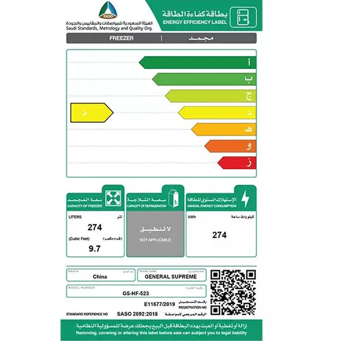 فريزر ارضى جنرال سوبريم 10 قدم – أبيض GShf523