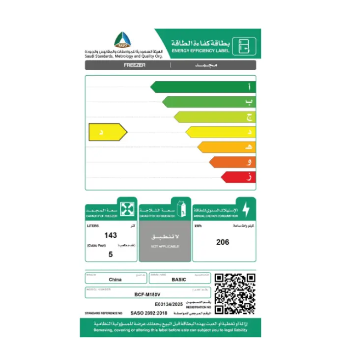 فريزر مسطح بيسك انفرتر 5 قدم – أبيض
