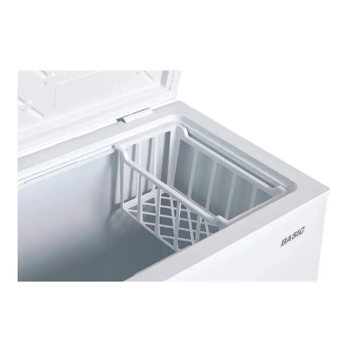يأتي فريزر مسطح بيسك بمساحة تخزين واسعة صُممت لتستوعب كميات كبيرة من الأطعمة والمجمدات بكل سهولة مما يساعدك على تنظيم المأكولات بشكل مرتب والوصول إليها بسرعة عند الحاجة هذه السعة الكبيرة تجعله خيارًا مثاليًا للعائلات الكبيرة أو للاستخدام التجاري حيث يوفر مرونة أكبر في التخزين مع الحفاظ على كفاءة التبريد والتجميد الفعّال.