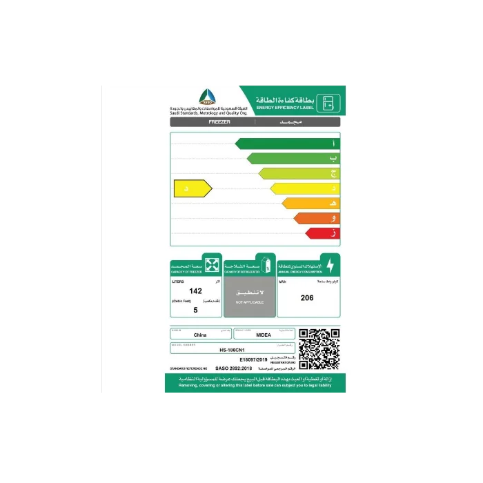 فريزر مسطح ميديا – 5 قدم – أبيض Hs186cn1