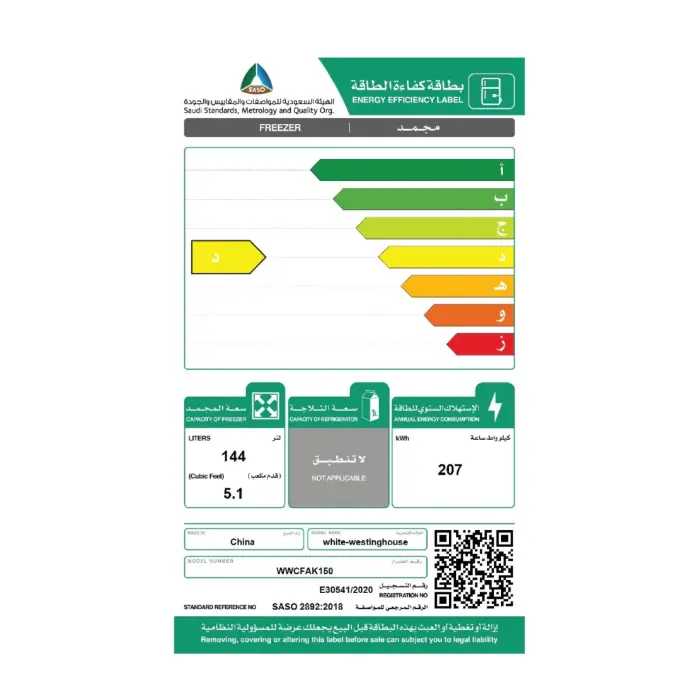 يتميز فريزر وايت وستنجهاوس باستهلاك منخفض للطاقة حيث تم تصميمه باستخدام تقنيات متقدمة تضمن كفاءة عالية في التبريد مع تقليل استهلاك الكهرباء إلى الحد الأدنى. هذا التصميم الموفّر للطاقة لا يساعد فقط في خفض فاتورة الكهرباء الشهرية، بل يساهم أيضًا في تقليل التأثير البيئي من خلال تقليل الانبعاثات الكربونية. بفضل هذه الخاصية، يمكنك الاعتماد على الفريزر لتوفير أداء قوي وموثوق طوال الوقت، مع الحفاظ على اقتصاديات الاستخدام واستدامته على المدى الطويل.