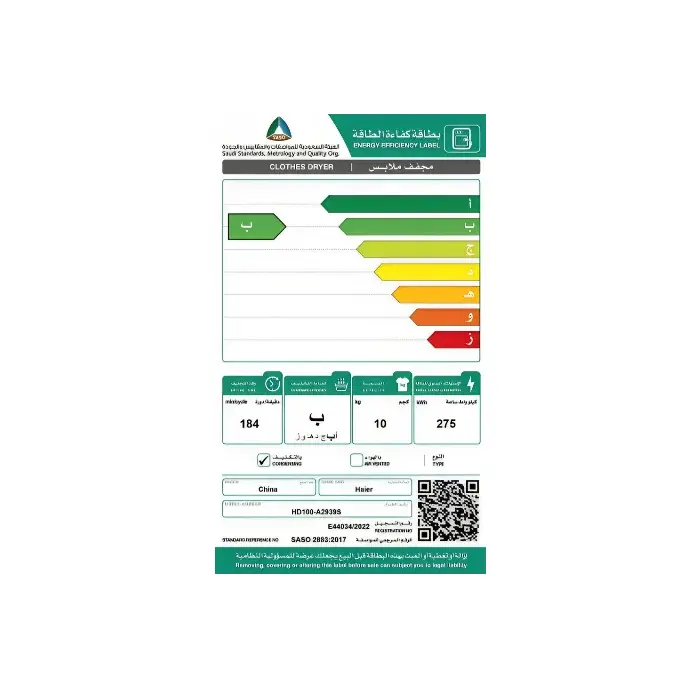 اكتشف قوة الابتكار مع مجفف ملابس هاير المزود بتكنولوجيا المضخات الحرارية المتقدمة، الذي يرتقي بتجربة الغسيل إلى مستوى جديد من الراحة والكفاءة. يضمن هذا النظام الذكي تجفيف الملابس بسرعة وكفاءة عالية، مع الحفاظ على نسيجها وألوانها كما لو كانت جديدة، دون أي تلف أو انكماش. لا يقتصر دوره على التجفيف فقط، بل يساهم أيضًا في خفض استهلاك الطاقة بشكل كبير، مما يجعله صديقًا للبيئة وللفاتورة الشهرية. بفضل تصميمه العصري والتقنيات المبتكرة التي يحتويها، يقدّم المجفف أداءً موثوقًا وهادئًا، ليمنحك ملابس جافة، ناعمة، وعطرة في كل مرة. استمتع بتجربة غسيل ذكية تجمع بين الفعالية، السرعة، والاقتصاد في الطاقة، واجعل من روتين الغسيل مهمة سهلة وممتعة يوميًا.