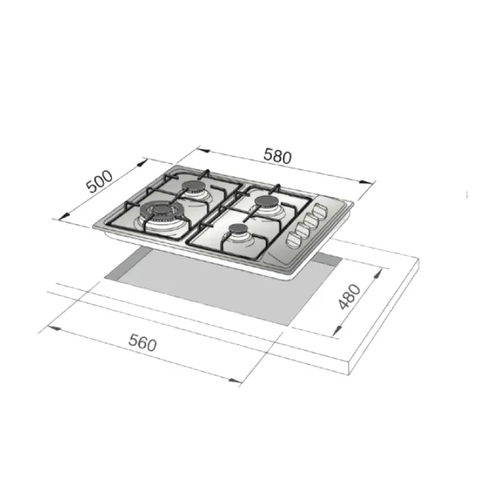 مسطح بلت ان ماستر جاز 60 سم تركي – 4 عيون غاز – ستيل MGRT0211