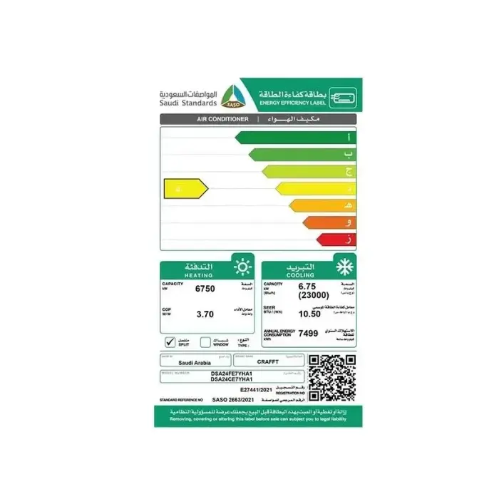 مكيف اسبلت كرافت 23 ألف وحدة – وطني – بارد DSA24FE6YHA1 2,131 ر.س