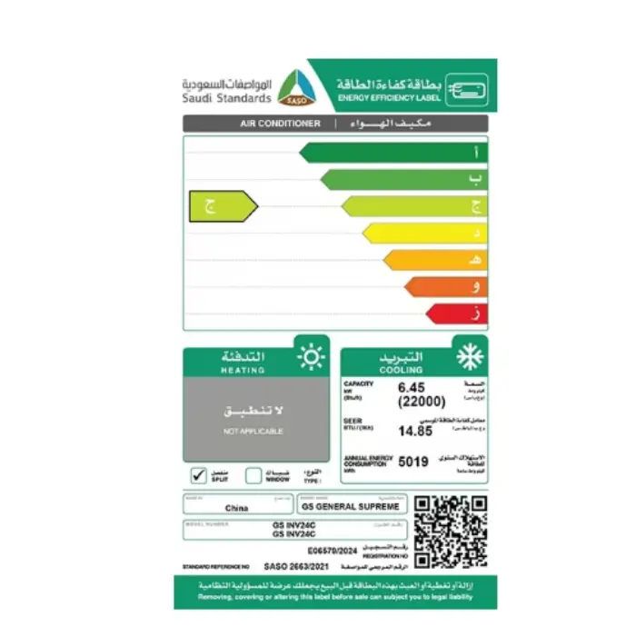 مكيف جنرال سوبريم 22000 وحدة اسبليت دايموند بلو انفرتر بارد – GSINV24C