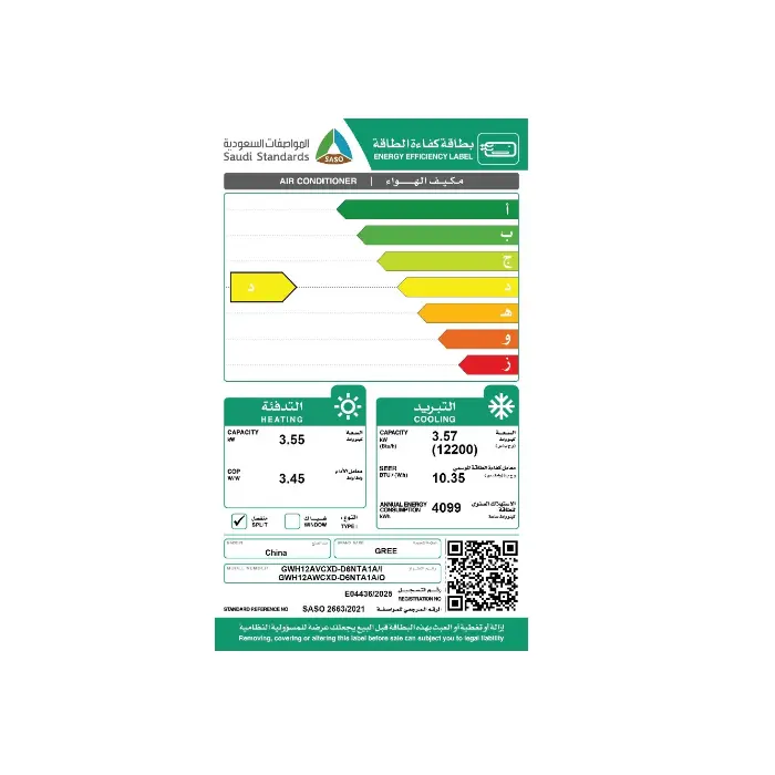 مكيف سبليت جرى 12300 وحدة أي ماكس بارد GWC12AVCXB-D6NTA1A السعر الأصلي هو: 1,974 ر.س.السعر الحالي هو: 1,740 ر.س.