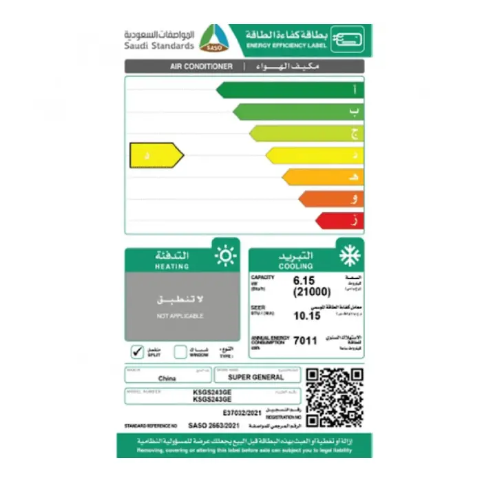 مكيف سبليت سوبر جنرال أونو 21000 وحدة – بارد Ksgs243ge