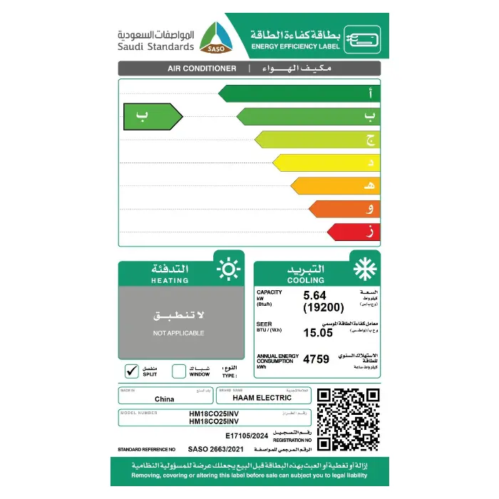 مكيف سبليت هام بارد 19200 وحدة انفرتر – واي فاي