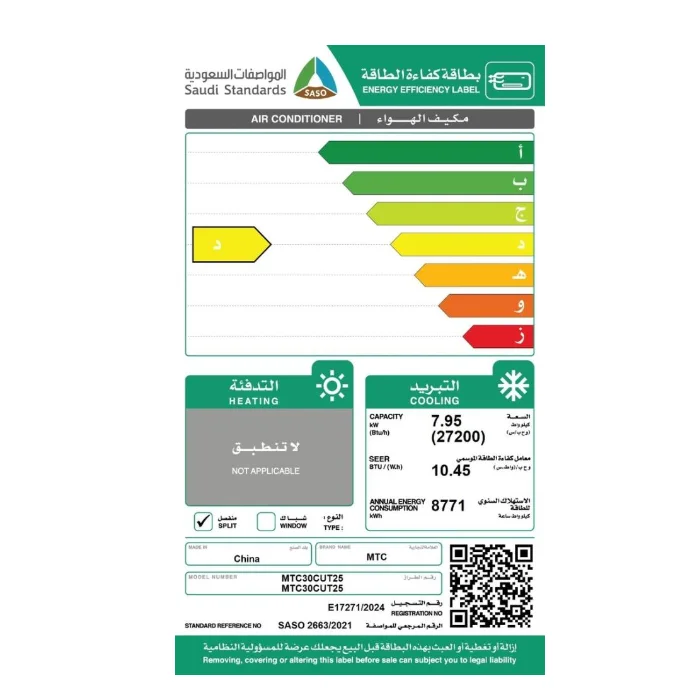 مزود مكيف سبليت MTC بضاغط GMCC عالي الكفاءة يضمن أداءً قويًا ومستقرًا مع توفير الطاقة، مما يعزز من عمر المكيف ويمنحك تبريدًا أسرع وموثوقًا حتى في الأجواء شديدة الحرارة.