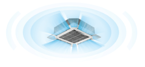 يتميز مكيف سقف كاسيت فيشر بتدفق هواء بعيد المدى يصل حتى 15 مترًا، مما يضمن توزيعًا مثاليًا للهواء في جميع أنحاء الغرفة بكفاءة عالية. بفضل هذه الخاصية، يمكنك الاستمتاع بتبريد أو تدفئة سريعة ومتجانسة، حتى في المساحات الكبيرة، دون الحاجة إلى الجلوس بالقرب من الوحدة للحصول على الأداء الأمثل