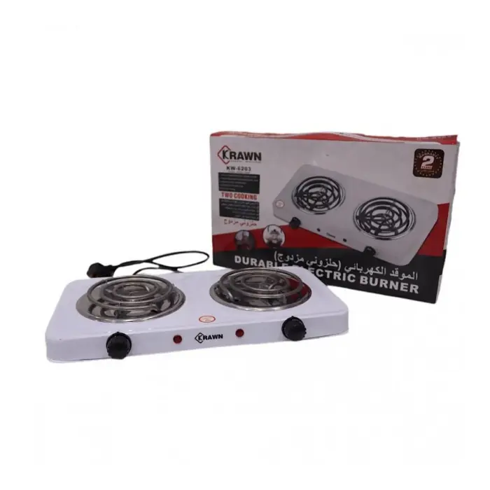 موقد كهربائي كراون 2000 وات حلزوني 2 شعلة – أبيض KW-6203