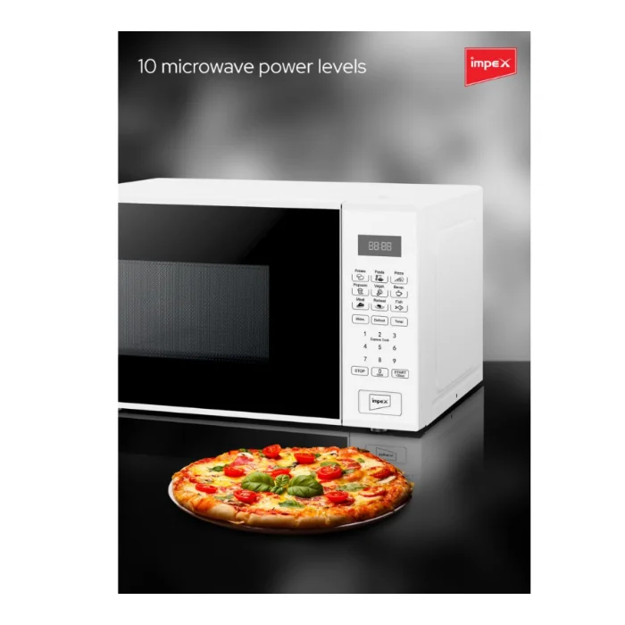 يتمتع الميكروويف بقدرة تسخين عالية تتيح إعداد الطعام بسرعة وفعالية، سواء للتسخين، الطهي، أو الشوي، مما يوفر الوقت والجهد مع ضمان نتائج متساوية ولذيذة في كل مرة تستخدمه فيها.
