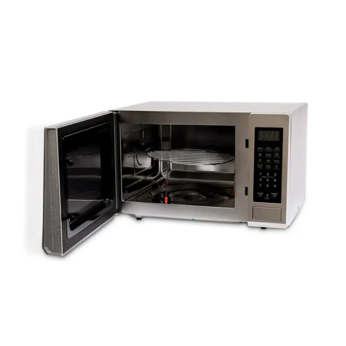 يحتوي الميكرويف بوجود شواية كهربائية قوية تصل قدرتها إلى 1000 وات مما يتيح لك تحضير الأطعمة المشوية بكفاءة عالية تعد هذه الميزة مثالية لتحمير اللحوم والدواجن والأسماك بالإضافة إلى إذابة الجبن وتحمير الخبز مما يضفي تنوعًا على تجربة الطهي الخاصة بك يعمل الميكروويف بقوة 900 وات مما يضمن تسخينًا سريعًا ومتساويًا بينما تساهم الشواية في تحقيق نتائج طهي مثالية ومقرمشة.
