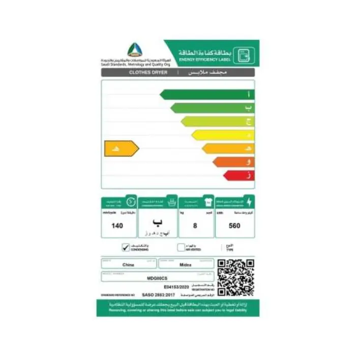 نشاف الملابس ميديا تعبئة أمامية 8 كيلو – فضي Mdg80cs